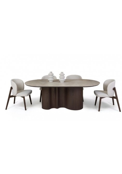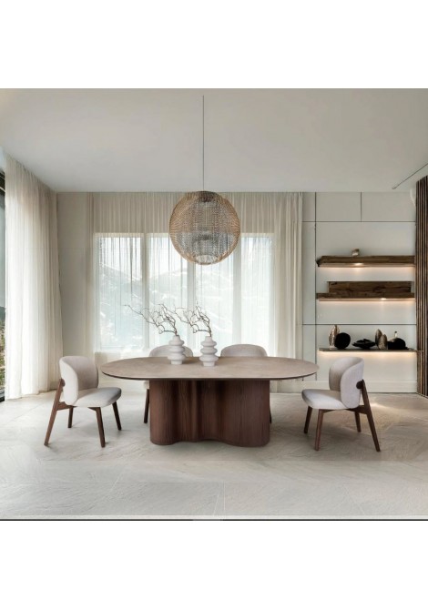 Τραπεζαρία ξύλινη με ξύλινα ιδιαίτερη βάση από δρυς. Μια τραπεζαρία κατασκευασμένη με τρόπο που την κάνει λειτουργική και κομψή ταυτόχρονα.