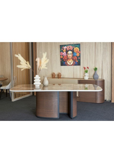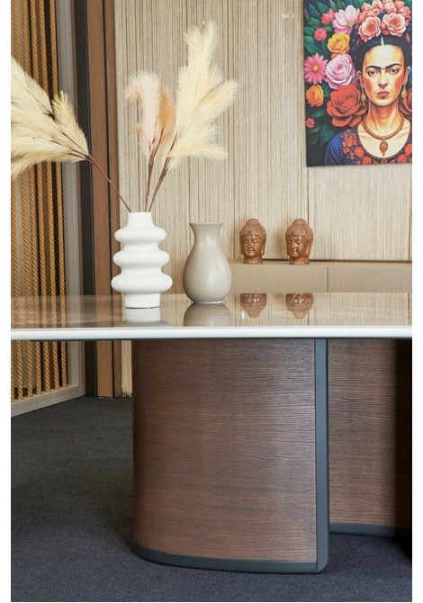 Τραπεζαρία με κεραμικό καπάκι με ξύλινη ιδιαίτερη βάση και στις διαστάσεις και το κεραμικό που επιθυμείτε. Μια τραπεζαρία κατασκευασμένη με τρόπο που την κάνει λειτουργική και κομψή ταυτόχρονα.